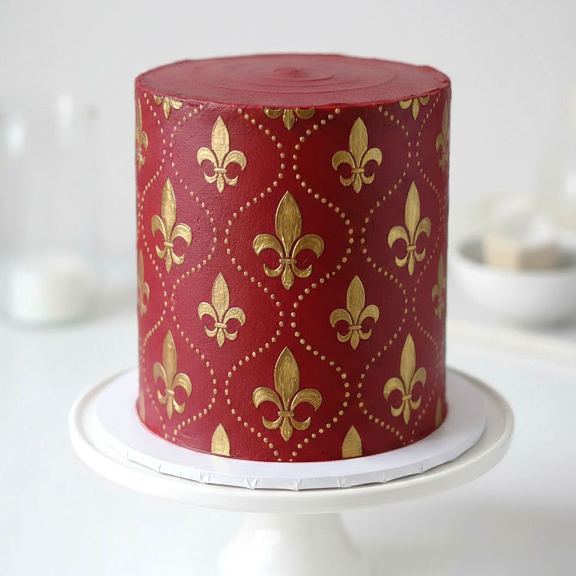 Elevate yourcake design with regal charm using our Fleur-de-lis Cake Stencil, adding a touch of royal sophistication to every slice.
